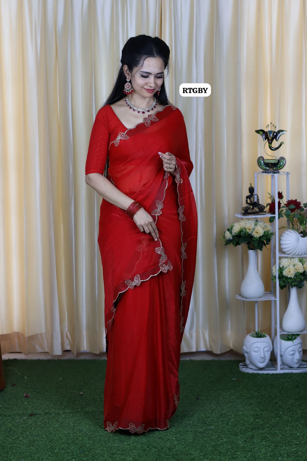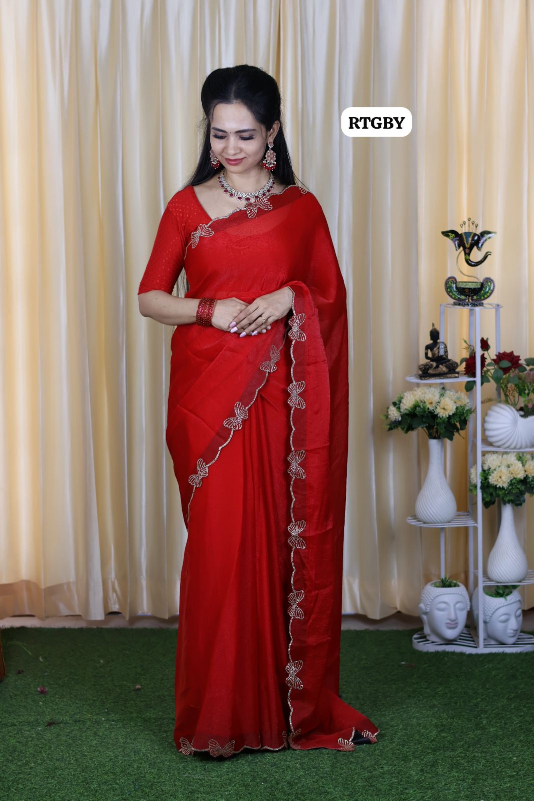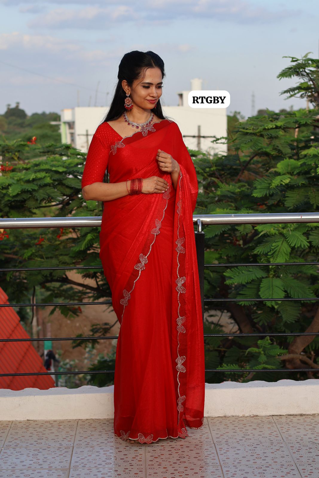 Space silk fabric with swaroski butterfly done on border with running blouse🥳