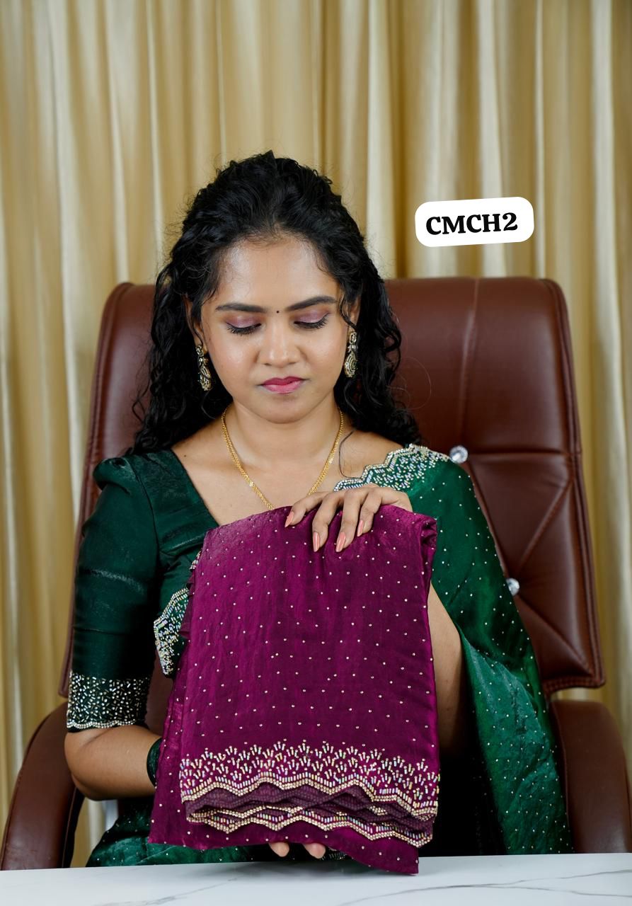 Premium Jimmy choo sarees with Full heavy pure Zarkan work with work in blouse sleeves and back neck