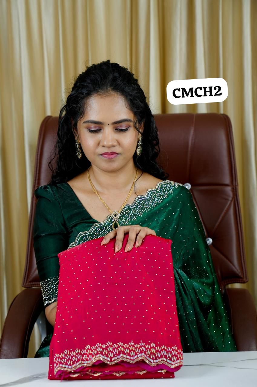 Premium Jimmy choo sarees with Full heavy pure Zarkan work with work in blouse sleeves and back neck