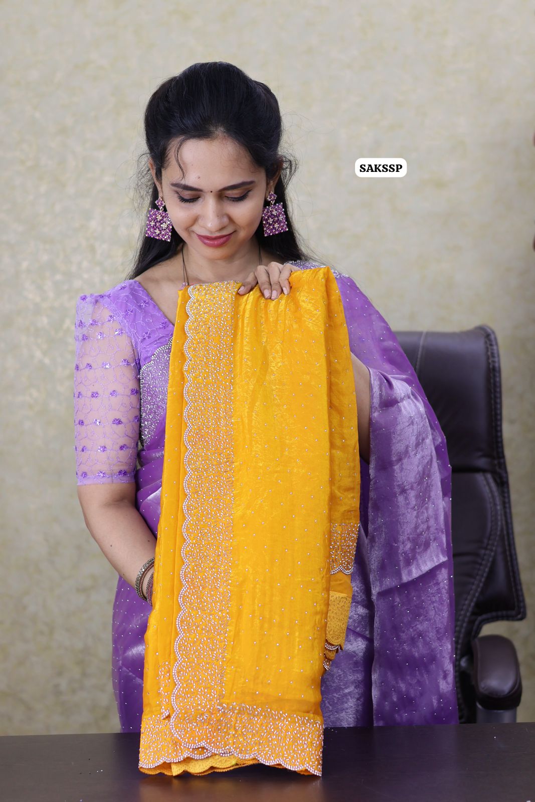 space silk with cut work border with running blouse 🔥😍🥳Yellow