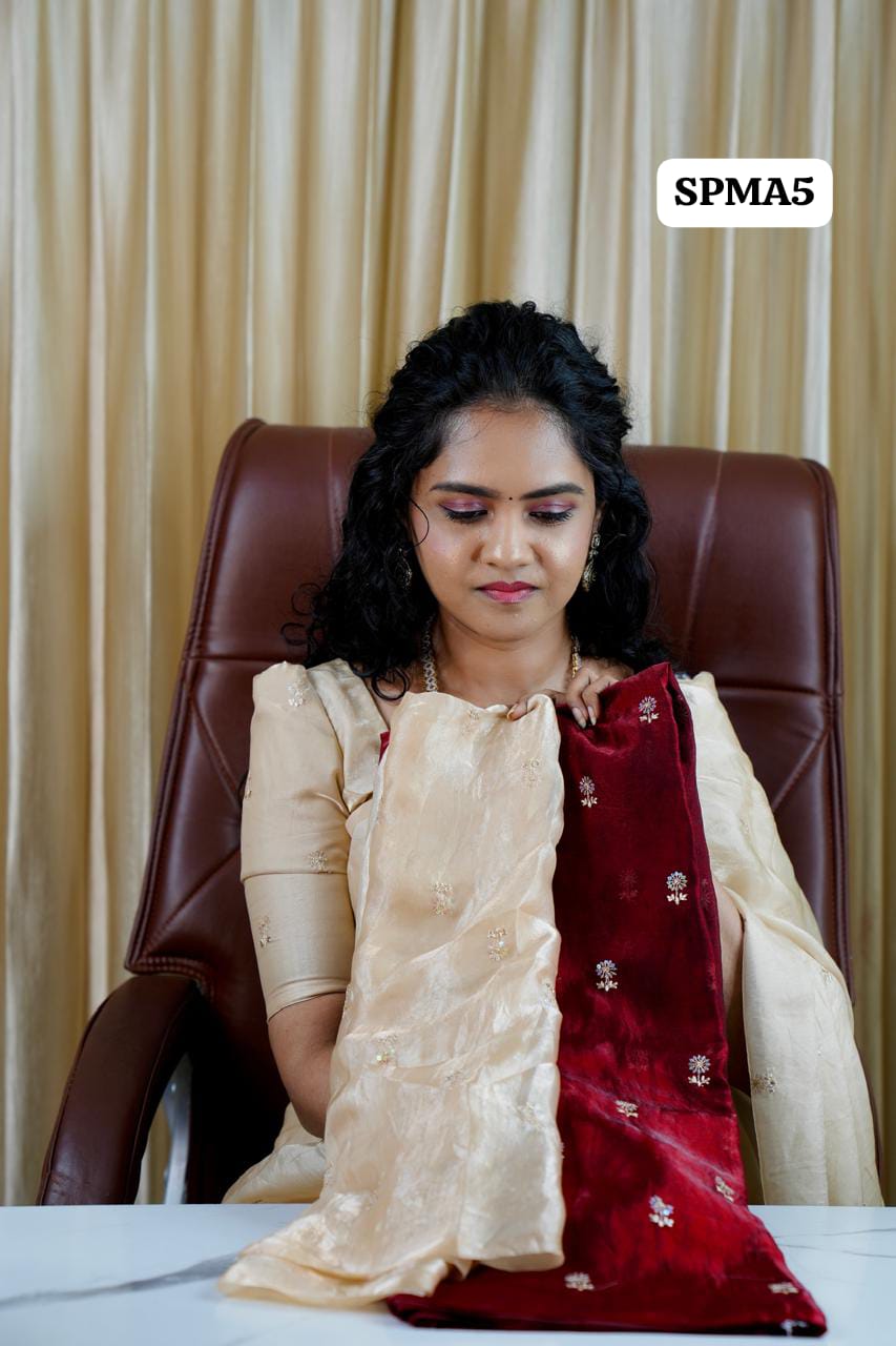 Space silk sarees with contrast blouse.